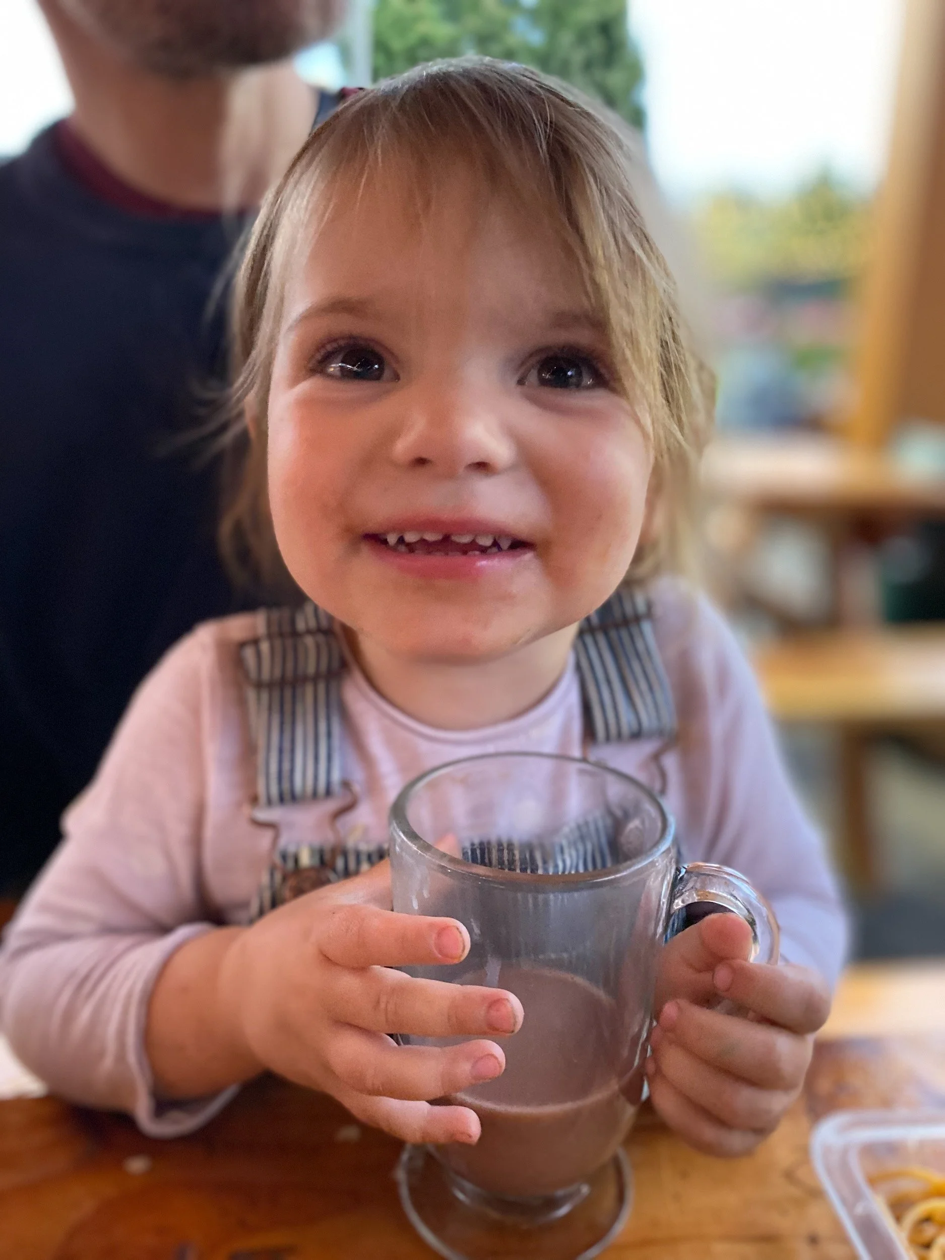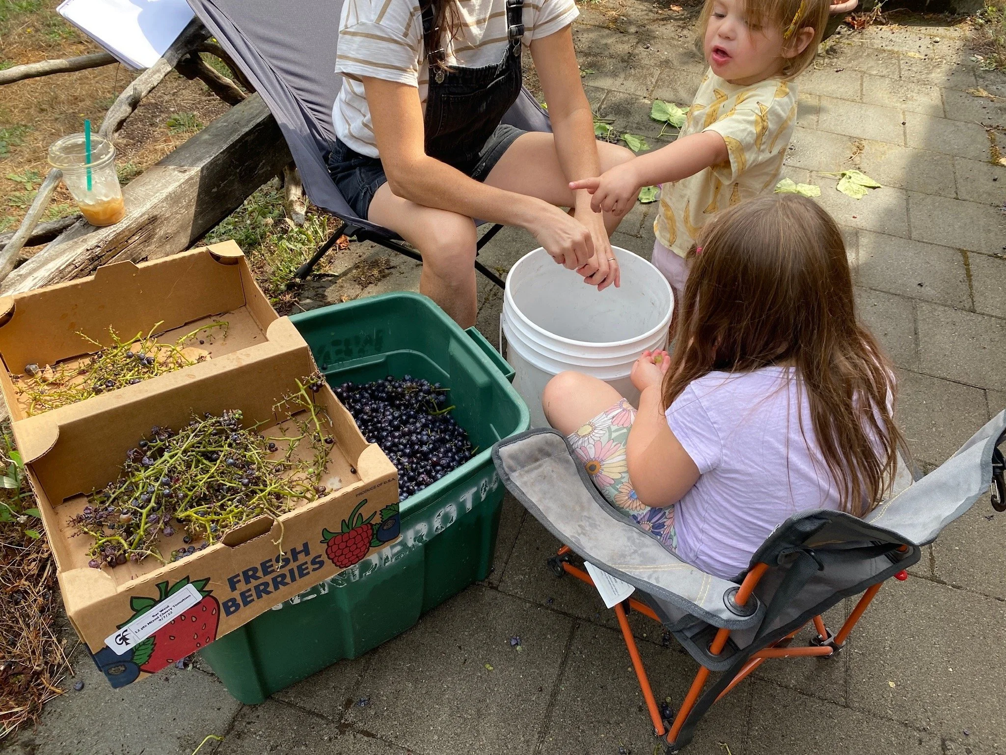 In mid-September, we celebrated one month as farmers by harvesting the grapes! The girls were huge helpers in making very sticky and delicious grape juice :)
